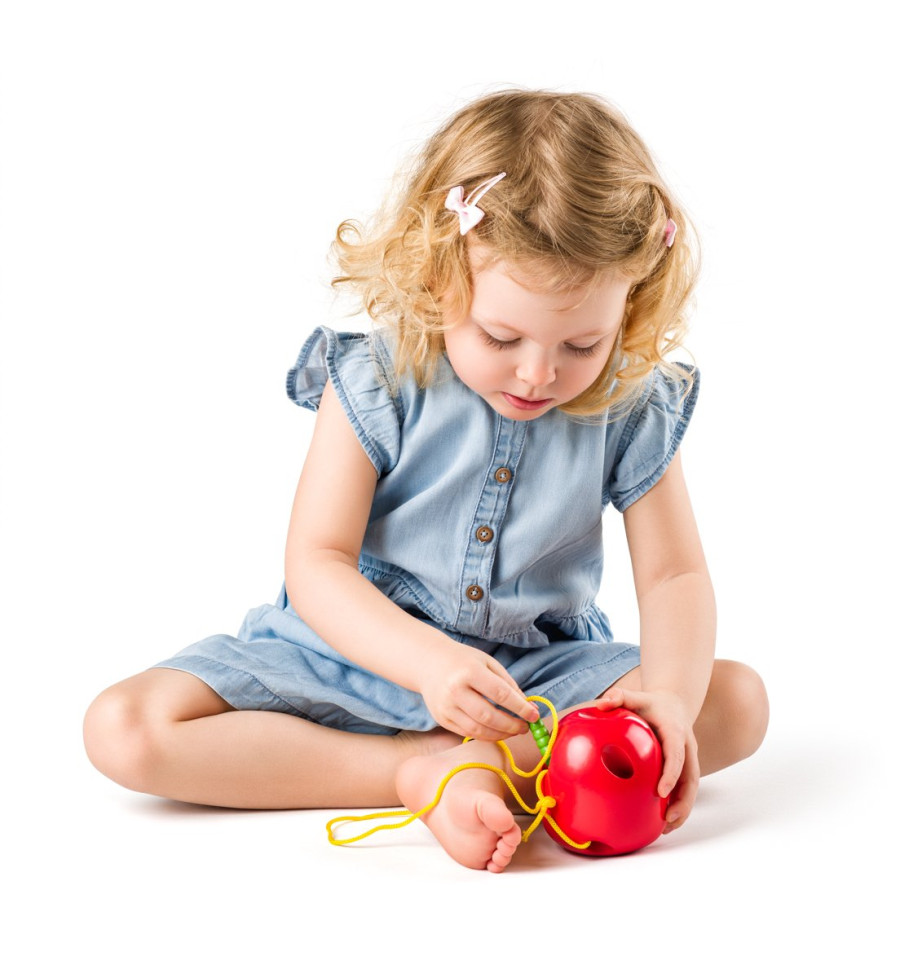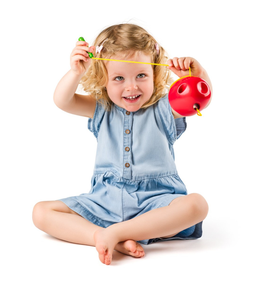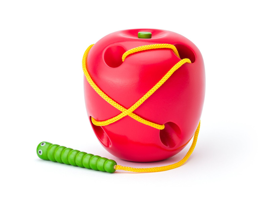 Veselá provlékací hra, podporuje manuální zručnost a připravuje děti na skutečné šití. Dítě provléká červíka uchyceného na tkaničce děravým jablkem a tím cíleně cvičí jemnou motoriku.