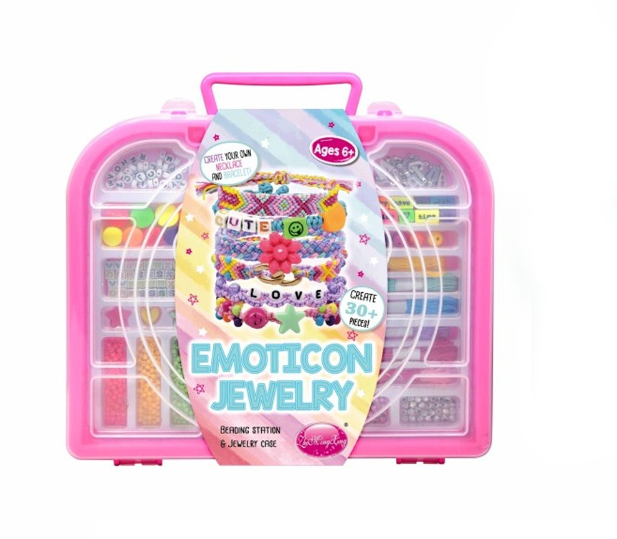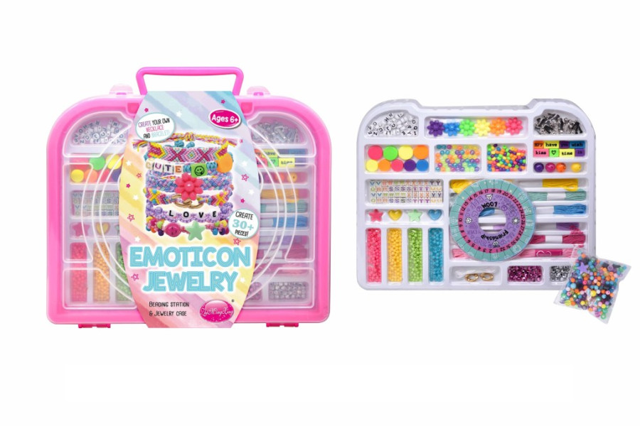 Velká sada korálků na výrobu vlastních pletených náramků a náhrdelníků. Sada obsahuje korálky různých barev a tvarů, šňůrku a kulatý stav. Praktické balení kufříku s uchem a dělenými přihrádkami na korálky.