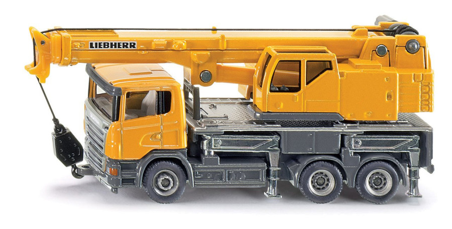 Řiditelný tříosý jeřáb Scania s podvozkem a otočnou kabinou vyrobenou z kovu. Jeřáb je vybaven teleskopickým ramenem se čtyřmi podpěrami. Pneumatiky jsou vyrobeny autenticky z gumy, díky čemuž má jeřáb hladký chod. Kovový hák je možné zvednou, nebo spustit pomocí otočné páky.
