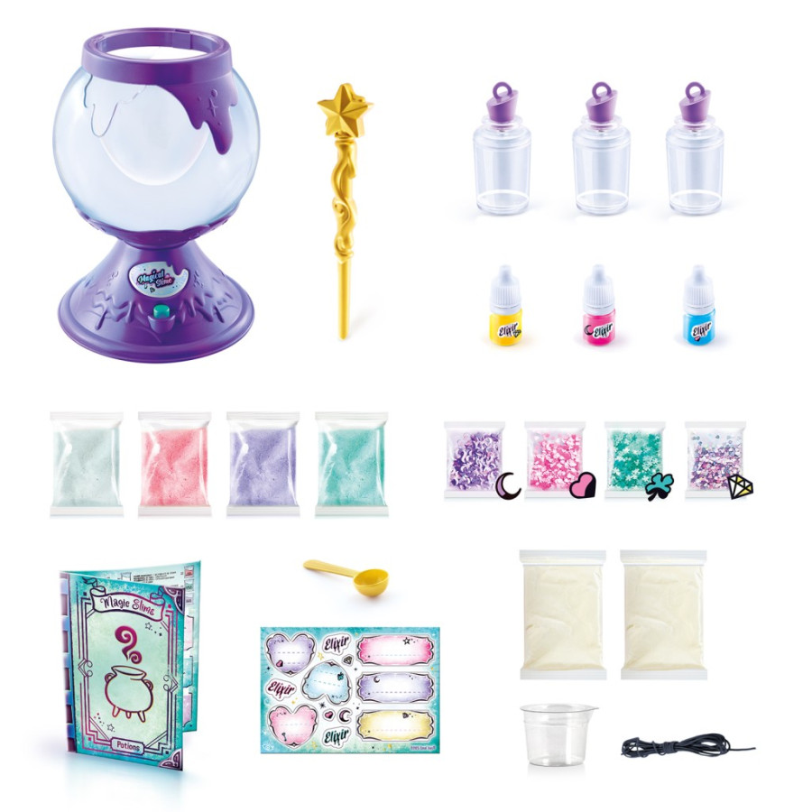 Každé balení obsahuje kotlík, hůlku, prášky na sliz, recepty na elixíry, odměrku, 4 dekorace do slizu, 3 elixíry, 3 lahvičky na elixír, návod. Výrobek vyžaduje 4 × 1,5V AA baterie (nejsou součástí).
