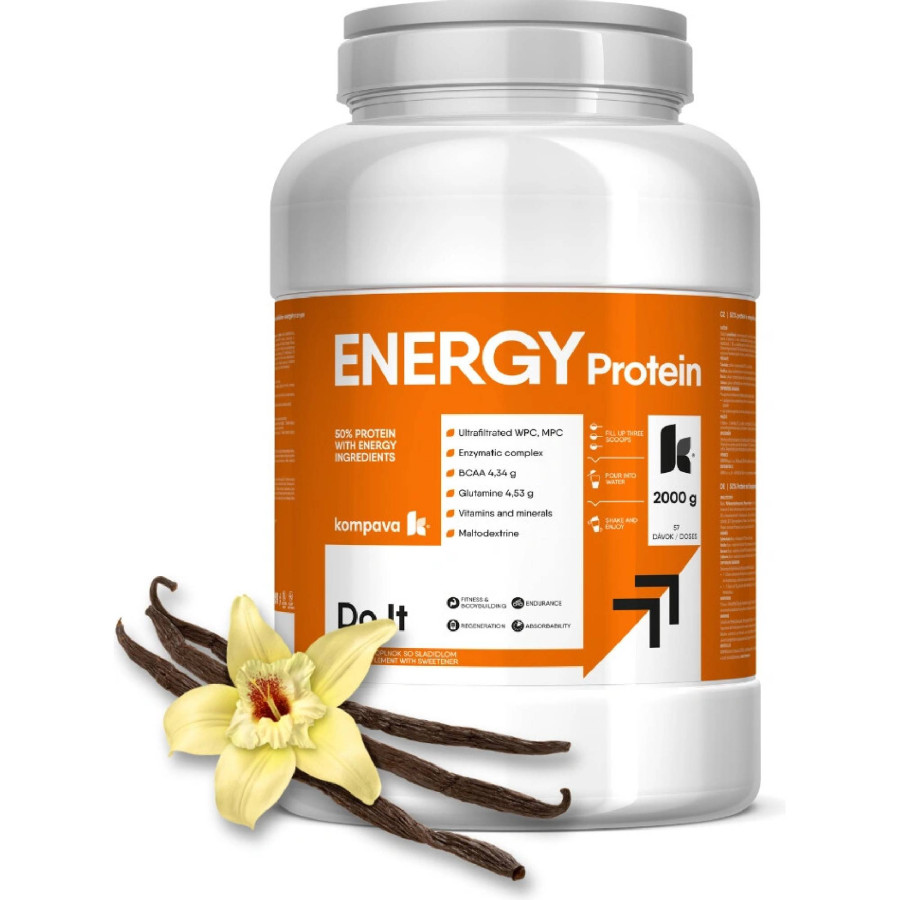 Je obohacený o anabolizující látky jako L-glutamin a BCAA, které jsou potřebné při růstu svalové hmoty, ochraně svalstva a při regeneraci po náročném tréninku, kromě toho dodají sportovci potřebnou energii. Enzymový komplex obsažený v ENERGY Protein zlepšuje jeho vstřebávání, využitelnost všech nutričních látek v něm obsažených a zabraňuje nadýmání.