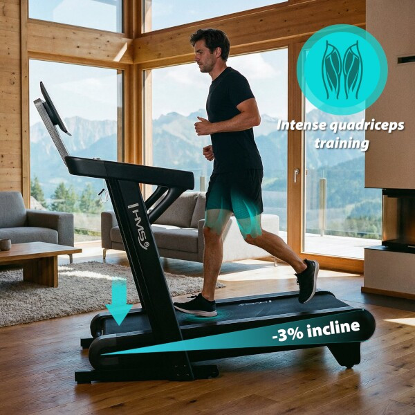 Běžecký pás TERRUN475 disponuje obousměrným sklonem v rozsahu od -3 % do 12 %, který umožňuje realistickou simulaci seběhů i prudkých výběhů. Trénink tak připomíná běh v horách nebo na členitých lesních stezkách a intenzivně zapojuje svaly nohou, hýždí i středu těla (core).