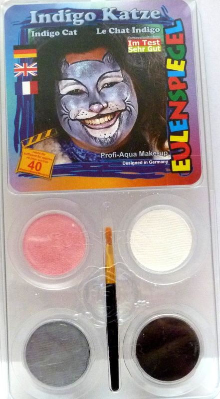 Sada barev na obličej a tělo Eulenspiegel je díky vysokému obsahu pigmentu a krycí schopnosti vydrží na mnoho použití, je snadno vodou ředitelná a lehce se s ní pracuje.