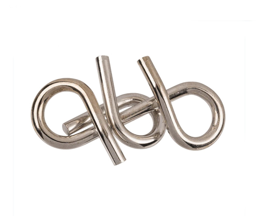 Kovový hlavolam egyptské hole v retro krabičce má středně těžkou obtížnost a jeho balení obsahuje návod jak odělit od sebe jeho části bez použití násilí.