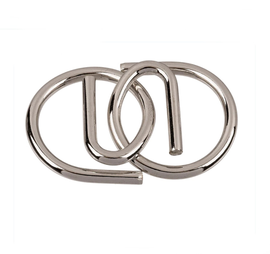 Kovový hlavolam dvojčata v retro krabičce má středně těžkou obtížnost a jeho balení obsahuje návod jak odělit od sebe jeho části bez použití násilí.