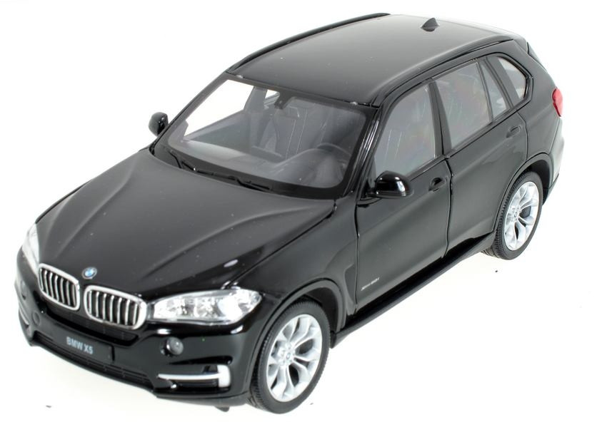 Kovový model auta BMW X5 v černé barvě a měřítku 1:24 značky Welly. Model má detailní zpracování karoserie včetně interiéru automobilu. Na modelu se otvírají přední dveře a kapota motoru.