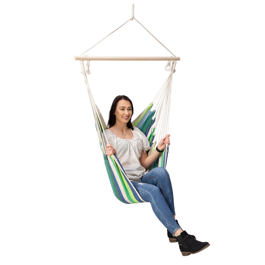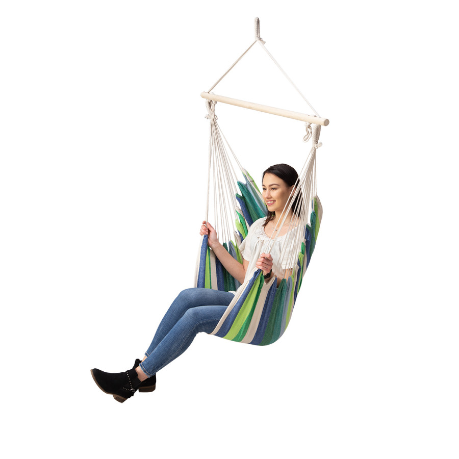 Konstrukce brazilského křesla vychází z houpací sítě. Textilní část je vyrobena z T/C plátna (kombinace polyesteru a bavlny), které je pomocí jednotlivých lan tvarováno do tvaru křesla. Lana prochází přes dřevěnou příčku a sbíhají se do závěsného oka. Křeslo stačí vybalit, zavěsit kamkoliv do vhodné výšky a už můžete odpočívat například při čtení oblíbené knihy. Použité materiály zajišťují nejen prodyšnost a pohodlnost křesla, ale také jeho dlouhou životnost a odolnost.
