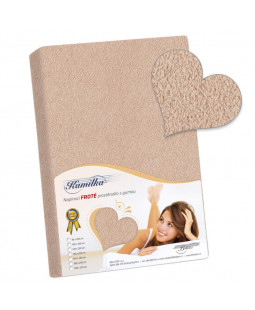 Jemné froté prostěradlo Kamilka s gumou po okraji pro snadné uchycení prostěradla na lůžko. Velikost prostěradla je 200 x 200 cm ( horní rozměr ) Výška rohu prostěradla je 25 cm vhodné pro výšku matrace do 20 cm.Prostěradlo je vyrobeno z materiálu skládající se z 82% bavlny, 18% polyesteru s gramáží 180/m2.Doporučujeme prát odděleně na 60°C