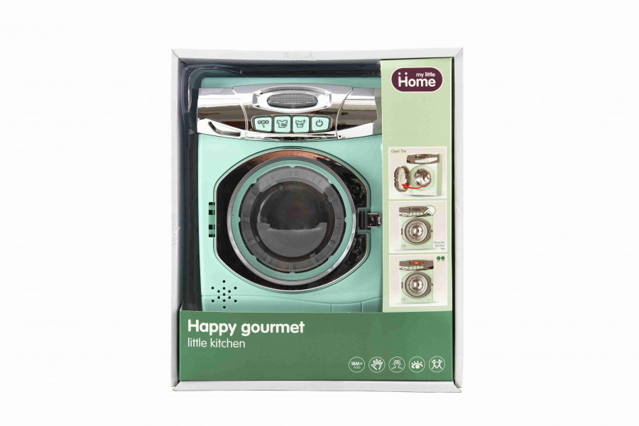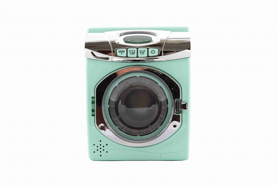 Po zapnutí pračka vydává reálný zvuk, svítí a otáčí se buben. Pračka o rozměrech 13,5 x 17 x 10 cm je vyrobena z kvalitního PVC a vyžaduje 3 ks baterií typu AA, které jsou součástí balení.