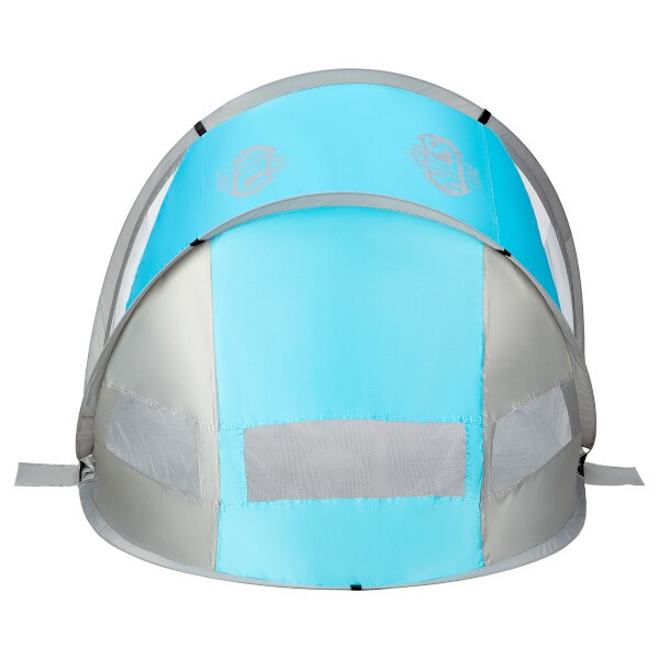 Pro složení se použije jednoduché gesto a stan se schová opět do tašky. Podlaha o rozměrech 200 x 120 cm a výška 93 cm umožňují úkryt před sluncem jak dětem, tak rodičům. Podpůrná konstrukce přístřešku je tvořena sklo-laminátovou tyčí. Na ni je navlečena polyesterová plachta. Použitý materiál odolá i malé, dešťové přeháňce.