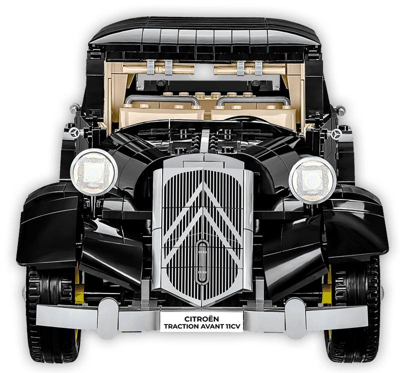 Postavte si model vozu Citroen Traction AVANT 11CV, vydaný v licenci automobilového giganta z Francie. Model v měřítku 1:12 je vyveden v tmavě černé barvě s typickým emblémem na chladiči. Přední dveře vozu se otevírají proti směru jízdy jako u skutečného vozu. Pod otevírací kapotou se nachází detailně propracovaný motor, předními koly lze otáčet.
