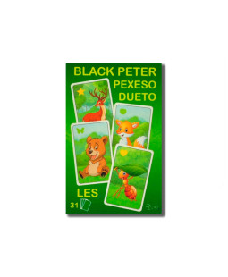 Černý Petr je klasická karetní hra, která přináší dětem i dospělým zábavu, poučení a rozvíjí schopnosti a dovednosti dětí. Pexeso je hra zaměřená na rozvoj koncentace, paměti, bystrosti a trpělivosti. Dueto je karetní hra, jejímž cílem je shromáždit dvojici k sobě příslušejících karet. Balení obsahuje sadu her 3v1 v designu lesa.Určené pro děti ve věku od 3 let.