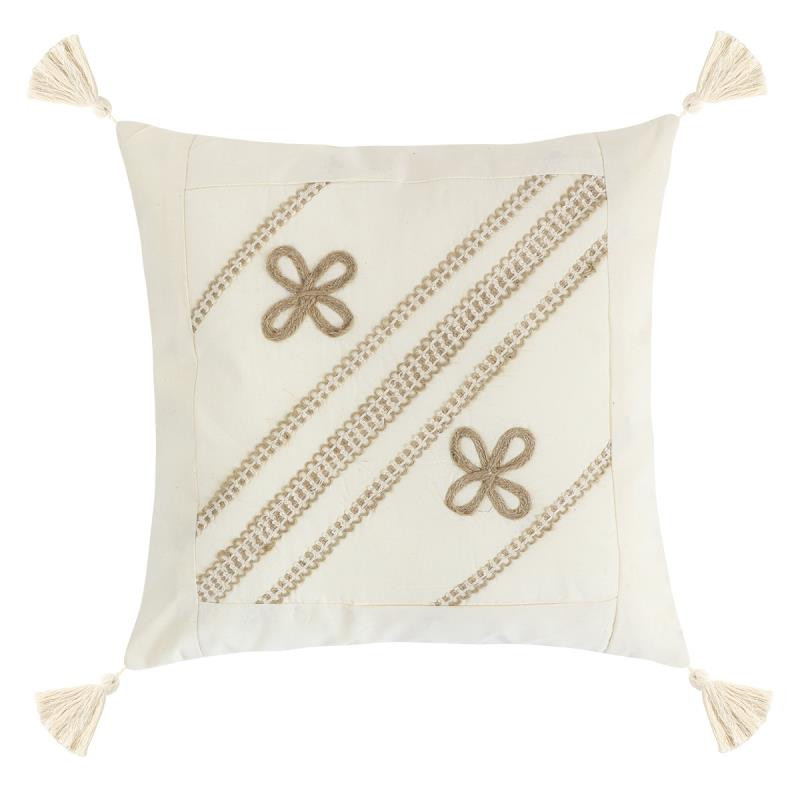 Nabízíme samostatný povlak, který povlečete na polštář, který již máte doma. Pohodlné zapínání na zip usnadní převlékání. Povláček ze 100% bavlny pro milovníky přírodních materiálů. Je zdobený jutou a krajkou. V rozích jsou všité ozdobné střapce.